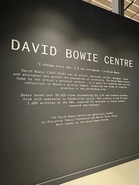 Run, don’t walk, to go and visit the new V&A East Storehouse if you can; it’s an amazing space and I definitely want to go back and arrange to see some items up close. I, of course, loved the David Bowie Centre. One thing that struck me was that idea of reinvention, and how Bowie (like Madonna, Beyonce, even Taylor Swift) can go through different iterations of themself and yet the essence of them still comes clearly through. They can still connect with their audience because for all the external changes, there’s something fundamentally familiar that remains. It’s a good reminder that we shouldn’t overthink our own evolution nor shy away from showing our personality!